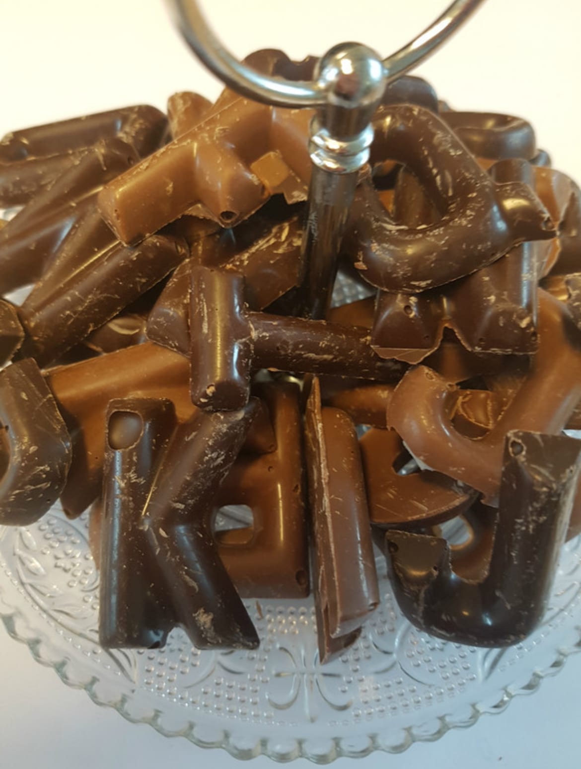 melk en pure chocolade lettertjes van callebaut chocoladebakje 200gram.