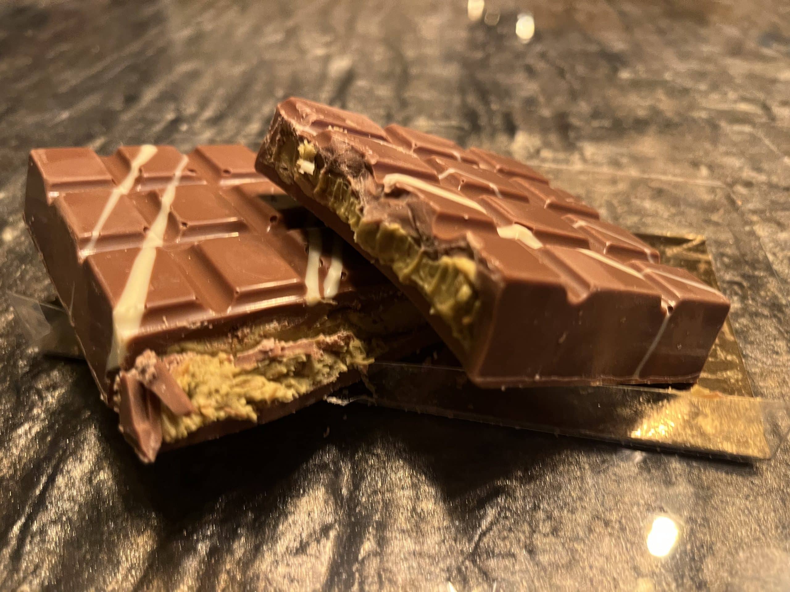 Een heerlijke Dubai reep xxl  met een romige pistache vulling en een krokante bite in drie variante.