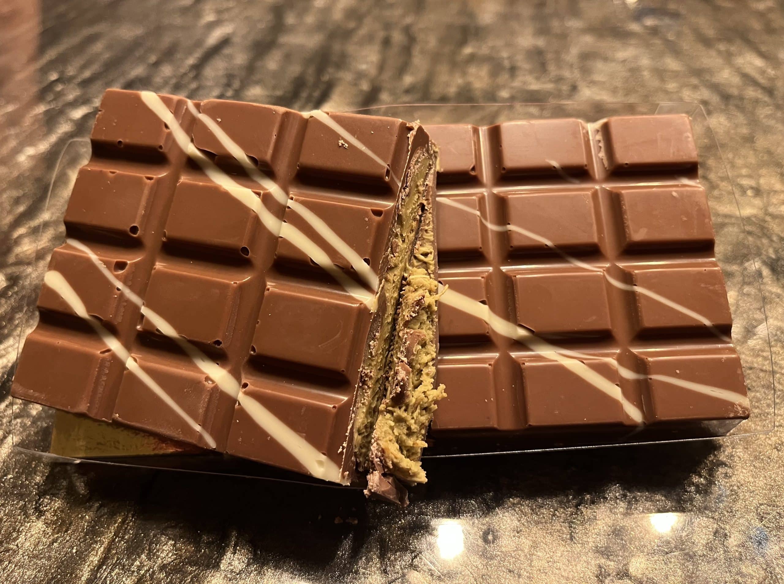 Een heerlijke Dubai reep xxl met een romige pistache vulling en een krokante bite in drie variante.